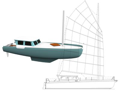The Rosie G is a junk rigged, scow-bow 42-footer designed by Jim Antrim.